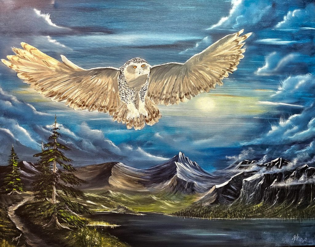 2024-005 100 x 80 cm R4 Eule in Landschaft JA