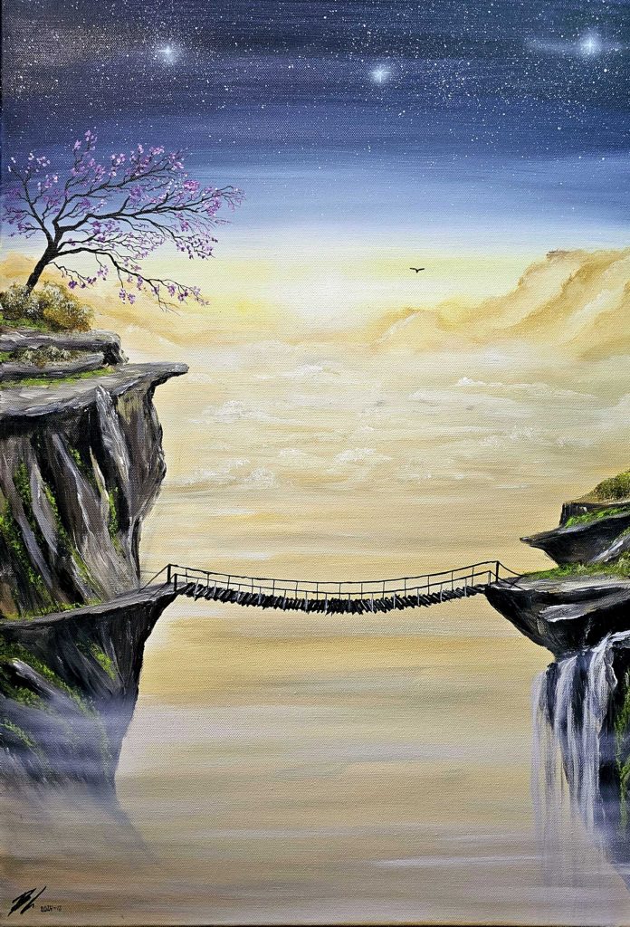 2024-002 50 x 70 cm R2 Landschaft mit Hängebrücke JA