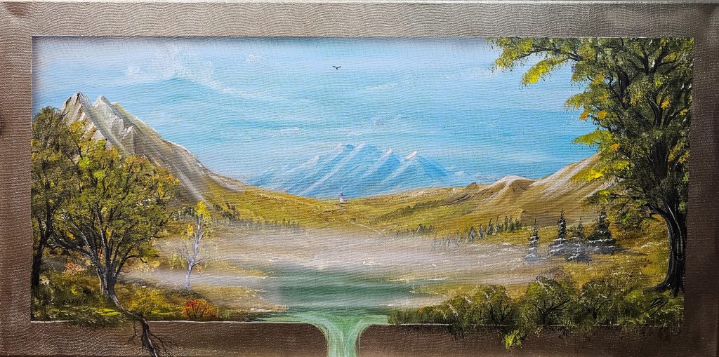 2024-008 40 x 80 cm R4 Landschaft Berge mit gemaltem Rahmen JA